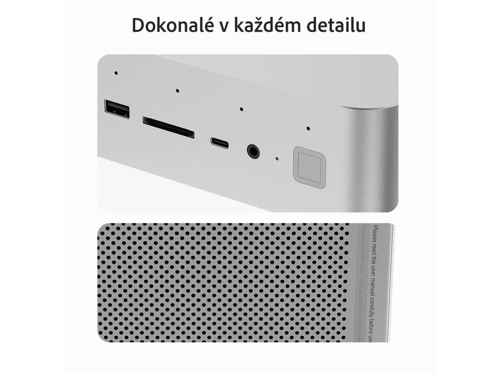 Velikost tohoto mini počítače je 135 x 135 x 44,7 mm (bez gumových nožiček) s váhou 780 gramů (záleží na zvolené konfiguraci). Nehledě kam jej umístíte, vždy designově zapadne.