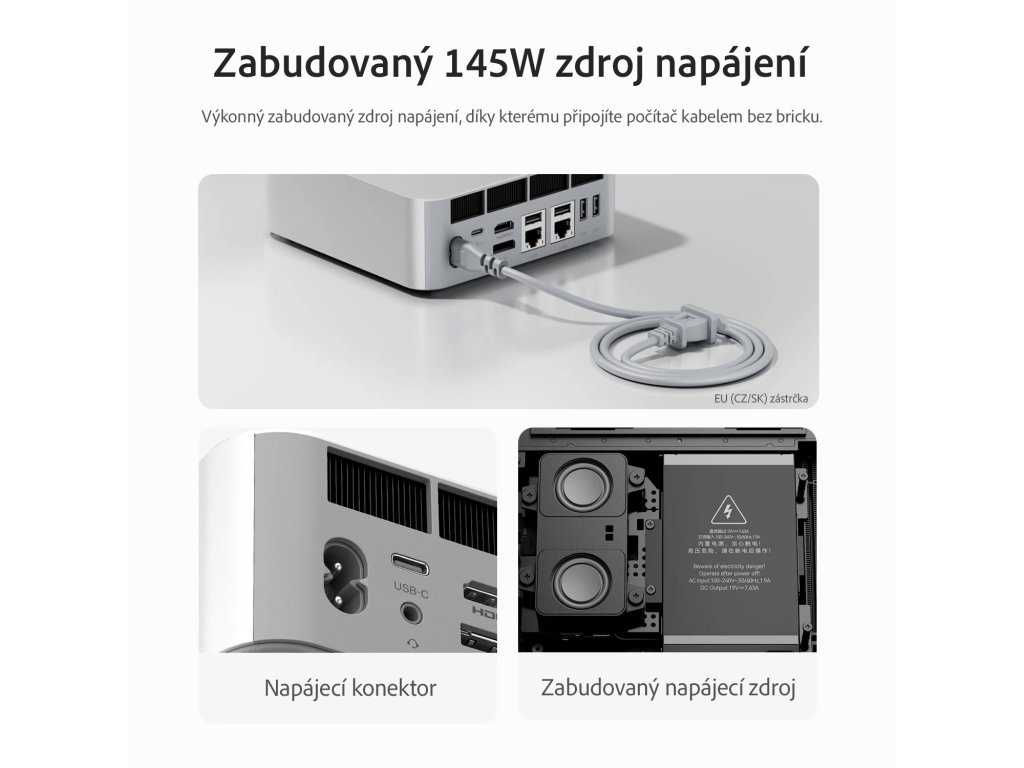 Zdroj integrován přímo do počítače. AC 100-240V, 50/60Hz, 1.9A
