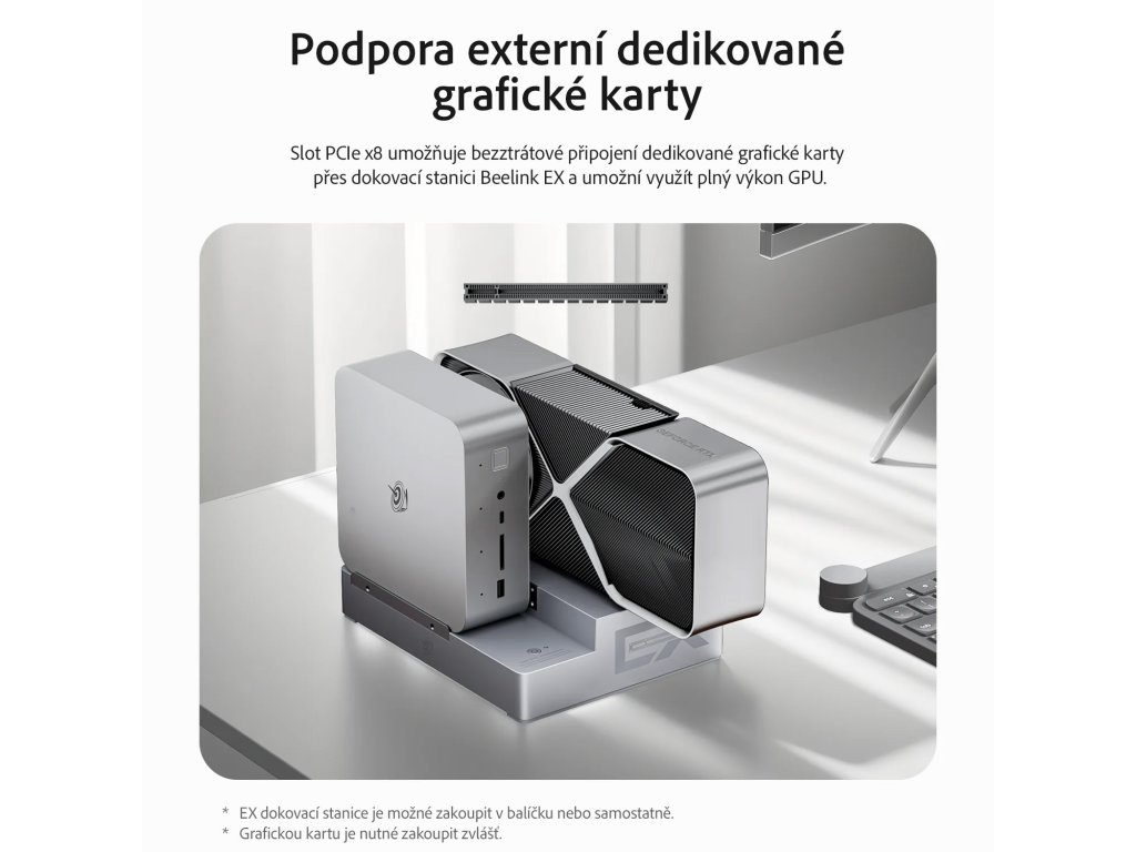Grafická jednotka není součástí Beelink EX Pro Dock Station. Grafickou jednotku je nutné dokoupit samostatně dle Vašeho výběru.