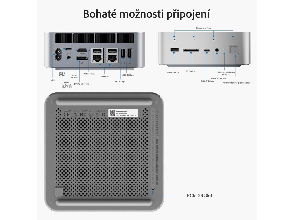 Jedinečné řešení s vestavěným slotem PCIe 5.0x8 podporující externí grafickou jednotku skrze dokovací stanici Beelink EX Dock Station. Znásobte výkonový potenciál pomocí eGPU.