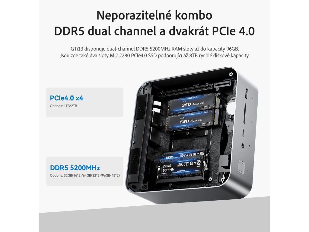 Model GTi13 s 16-32GB operační pamětí, 1-5TB SSD diskem, procesorem Intel Core i9-13900HK s podporou až pro tři monitory současně. OS Windows 11 Pro CZ. Záruka 3 roky.